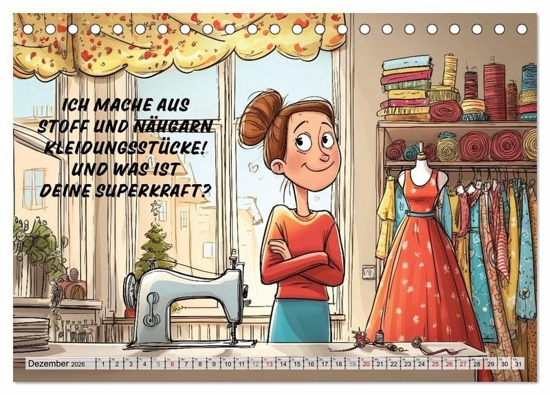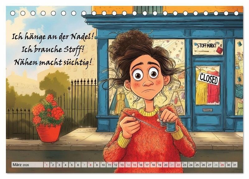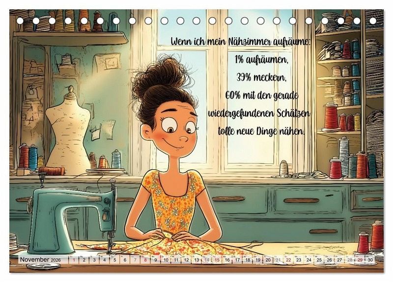 Dieser ganz besondere Wandkalender ist vollgepackt mit humorvollen Sprüchen rund ums Nähen, begleitet von einzigartigen, KI-generierten Bildern. Er ist das perfekte Geschenk für passionierte Schneiderinnen und Schneider und bringt Stil in dein Nähzimmer und ein Schmunzeln auf dein Gesicht!