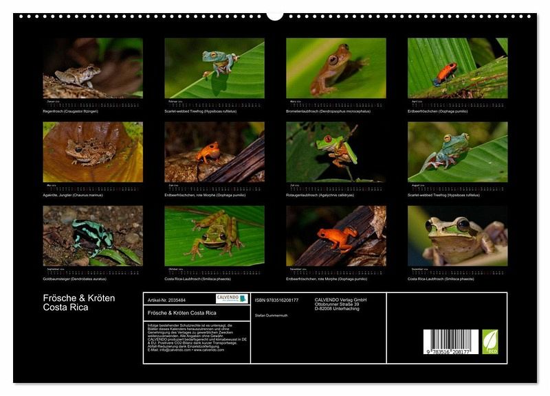 PREMIUM-LINIE - Brillanter Fotokalender mit 12 wunderschönen Motiven, Kunstdruck in Hochglanz in Museumsqualität.QUALITÄT - edle Materialien, stabile Rückwand mit 2 innovativen Einstecktaschen für eine optimale Präsentation an der Wand.NACHHALTIG - deutliche Abfallreduzierung durch bedarfsgerechteEinzelstückfertigung, umweltfreundliches FSC-zertifiziertes Papier, Produktion in Deutschland, klimabewusste Logistik.PERFEKTES GESCHENK - Kalender für Freunde und Familie, für Kinder und Erwachsene, jung und alt, zu Weihnachten, Geburtstag oder zwischendurch.Farbenprächtige Froschlurche aus Costa Rica von Autor(in): Stefan Dummermuth