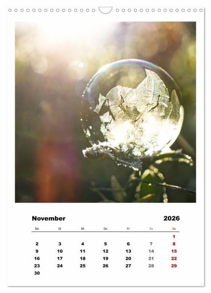 Lieber Seifenblasen als Trübsal blasen, das dachte sich auch die Fotografin und ging frisch ans Werk. Und frisch war es bei den Fotosessions wirklich, denn es braucht schon einige Minusgrade, bis Seifenblasen gefrieren. Erfreuen Sie sich jeden Monat an einem zauberhaften Foto dieser schnell vergäglichen Schönheiten.