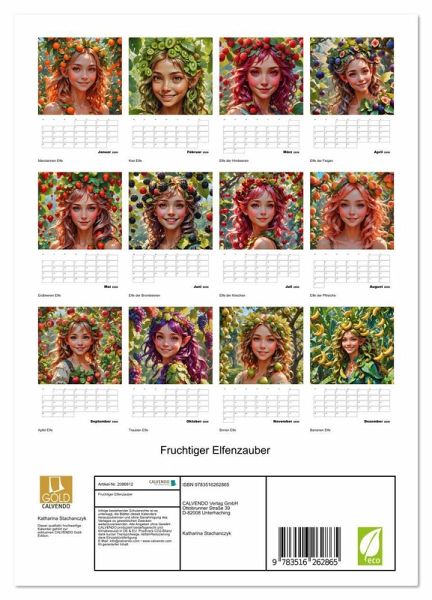 QUALITÄT - Hochwertiger Fotokalender mit 12 wunderschönen Motiven auf lichtbeständigem Bilderdruckpapier, robuste Spiralbindung mit Aufhängebügel.NACHHALTIG - deutliche Abfallreduzierung durch bedarfsgerechte Einzelstückfertigung, umweltfreundliches FSC-zertifiziertes Papier, Produktion in Deutschland, klimabewusste Logistik.PERFEKTES GESCHENK - Kalender für Freunde und Familie, für Kinder und Erwachsene, jung und alt, zu Weihnachten, Geburtstag oder zwischendurch.VIELFALT - Bildkalender in verschiedenen Formaten, z.B. DIN A5, DIN A4, DIN A3 sowie DIN A2. Ob Naturmotiv, Gemälde oder Fotos, ideal für ein persönliches Wohlfühlambiente.Lassen Sie sich von süßen Elfen mit bezauberndem, fruchtigem Kopfschmuck durch das Jahr begleiten. von Autor(in): Katharina Stachanczyk