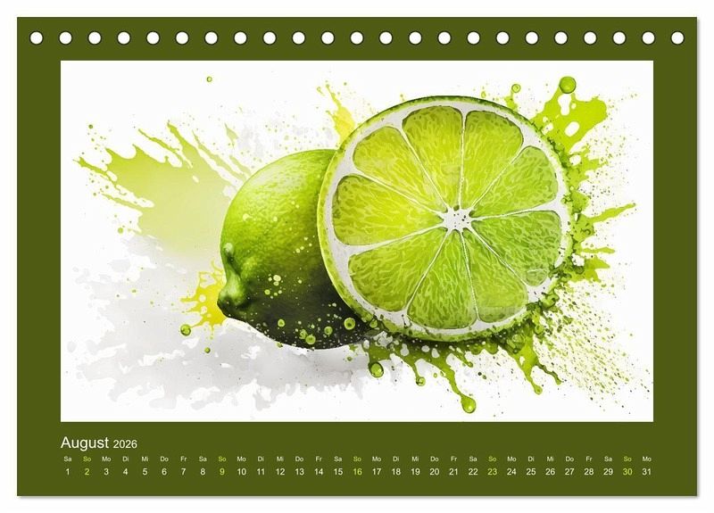Tauche ein in eine farbenfrohe Welt mit meinem einzigartigen KI-Kalender mit Früchten in Wasserfarben-Optik. Jede Monatsseite präsentiert liebevoll von künstlicher Intelligenz gestaltete Obst-Illustrationen - von saftigen Erdbeeren über Weintrauben bis hin zu reifen Zitrusfrüchten. Die harmonischen Farben und feinen Pinselstrukturen verleihen jedem Motiv eine natürliche, beruhigende Ästhetik.