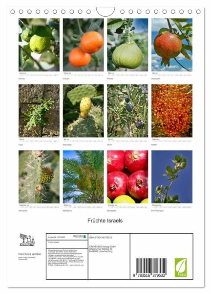 QUALITÄT - Hochwertiger Fotokalender mit 12 wunderschönen Motiven auf lichtbeständigem Bilderdruckpapier, robuste Spiralbindung mit Aufhängebügel.NACHHALTIG - deutliche Abfallreduzierung durch bedarfsgerechte Einzelstückfertigung, umweltfreundliches FSC-zertifiziertes Papier, Produktion in Deutschland, klimabewusste Logistik.PERFEKTES GESCHENK - Kalender für Freunde und Familie, für Kinder und Erwachsene, jung und alt, zu Weihnachten, Geburtstag oder zwischendurch.VIELFALT - Bildkalender in verschiedenen Formaten, z.B. DIN A5, DIN A4, DIN A3 sowie DIN A2. Ob Naturmotiv, Gemälde oder Fotos, ideal für ein persönliches Wohlfühlambiente.Typische Landesfrüchte überwiegend in Großaufnahme fotografiert in Israel von Autor(in): Hans-Georg Vorndran