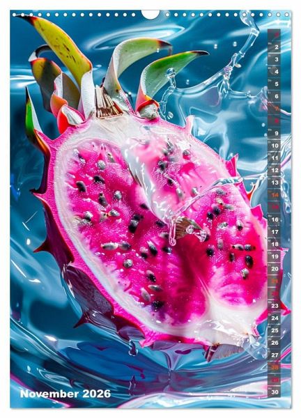 Tauche ein in die erfrischende Welt unseres Früchte-Kalenders! Ein unwiderstehlicher Begleiter für das ganze Jahr, der nicht nur deine Tage organisiert, sondern auch deine Sinne belebt. Jeder Monat präsentiert eine neue Palette von saftigen Früchten, die in kristallklarem Wasser schwimmen - ein Fest für die Augen und die Fantasie! Ob als Geschenk für deine liebsten Verwandten oder als Mitbringsel für Freunde und Bekannte, dieser Kalender ist ein Garant für strahlende Gesichter und erfrischende Überraschungen. Denn wer kann schon der Anziehungskraft von frischen Früchten widerstehen, besonders wenn sie so kunstvoll präsentiert werden?