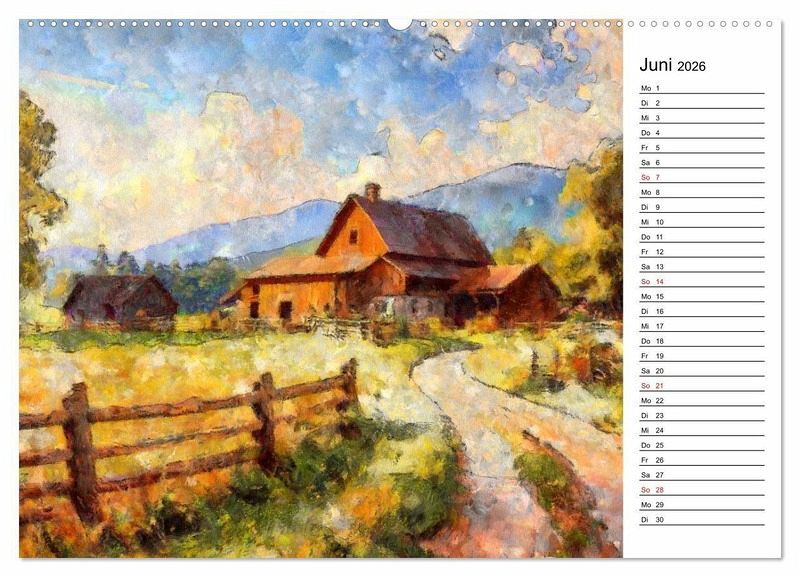 In der Mitte des 19. Jahrhunderts wurde es möglich, Malfarben in Tuben zu konfektionieren und etwa bis 1900 stetzte sich diese Nachdem es nun nicht mehr nötig war, Pigmente mit Bindemittel im Atelier zu mischen, konnten die Maler mit ihrem gesamten Gerät aus dem Atelier heraus ins Freie, um dort zu malen. Man kann fast sagen, hier entdeckten sie erst die Farbigkeit von natürlichen Licht- und Schattensituationen. Allen voran waren es Franzosen, welche die neue Freiheit des Malens auf die Leinwand brachten. Mit Hilfe der künstlichen Intelligenz haben wir die Malweise von sechs von ihnen nachempfunden und in diesem Kalender präsentiert.