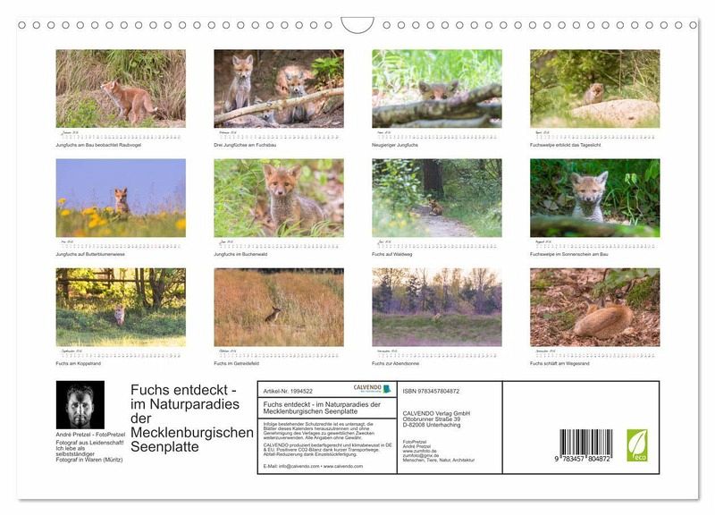 QUALITÄT - Hochwertiger Fotokalender mit 12 wunderschönen Motiven auf lichtbeständigem Bilderdruckpapier, robuste Spiralbindung mit Aufhängebügel.NACHHALTIG - deutliche Abfallreduzierung durch bedarfsgerechte Einzelstückfertigung, umweltfreundliches FSC-zertifiziertes Papier, Produktion in Deutschland, klimabewusste Logistik.PERFEKTES GESCHENK - Kalender für Freunde und Familie, für Kinder und Erwachsene, jung und alt, zu Weihnachten, Geburtstag oder zwischendurch.VIELFALT - Bildkalender in verschiedenen Formaten, z.B. DIN A5, DIN A4, DIN A3 sowie DIN A2. Ob Naturmotiv, Gemälde oder Fotos, ideal für ein persönliches Wohlfühlambiente.Füchse beobachtet an der Mecklenburgischen Seenplatte von Autor(in): André Pretzel