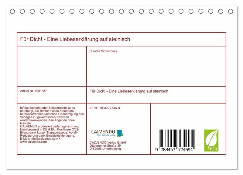 QUALITÄT - Hochwertiger Fotokalender mit 12 wunderschönen Motiven auf lichtbeständigem Bilderdruckpapier, robuste Spiralbindung.NACHHALTIG - deutliche Abfallreduzierung durch bedarfsgerechte Einzelstückfertigung, umweltfreundliches FSC-zertifiziertes Papier, Produktion in Deutschland, klimabewusste Logistik.PERFEKTES GESCHENK - Kalender für Freunde und Familie, für Kinder und Erwachsene, jung und alt, zu Weihnachten, Geburtstag oder zwischendurch.VIELFALT - Bildkalender in verschiedenen Formaten, z.B. DIN A5, DIN A4, DIN A3 sowie DIN A2. Ob Naturmotiv, Gemälde oder Fotos, ideal für ein persönliches Wohlfühlambiente.Steine in Herzform, Herzen in Steinen und mit Steinen geformt von Autor(in): Claudia Schimmack