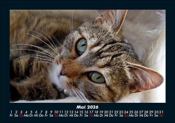 Für Katzenfreunde 2026 Motivkalender DIN A5 Vero-Kalender erhalten Sie mit Motiven aus den verschiedensten Themenbereichen wie Natur, Blumen und Landschaft, Tierwelt, Architektur, Reise und Urlaub, Technik, Automobil und Eisenbahn, Emotionen, Sport und Musik. Gedruckt werden die Monats-Kalender aus dem Vero Verlag auf hochwertigem Kalenderbogen in Premium-Qualität und verschiedenen Größen. Die Vielfältigkeit der Motive unserer Foto-Kalender ist dank der Zusammenarbeit mit kreativen Fotografen möglich.