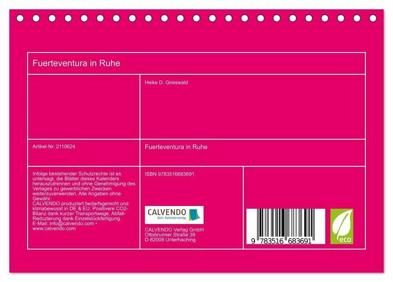 QUALITÄT - Hochwertiger Fotokalender mit 12 wunderschönen Motiven auf lichtbeständigem Bilderdruckpapier, robuste Spiralbindung.NACHHALTIG - deutliche Abfallreduzierung durch bedarfsgerechte Einzelstückfertigung, umweltfreundliches FSC-zertifiziertes Papier, Produktion in Deutschland, klimabewusste Logistik.PERFEKTES GESCHENK - Kalender für Freunde und Familie, für Kinder und Erwachsene, jung und alt, zu Weihnachten, Geburtstag oder zwischendurch.VIELFALT - Bildkalender in verschiedenen Formaten, z.B. DIN A5, DIN A4, DIN A3 sowie DIN A2. Ob Naturmotiv, Gemälde oder Fotos, ideal für ein persönliches Wohlfühlambiente.Meditative Ruhe und klare Kontraste begleiten den Blick über die Sonneninsel Fuerteventura. von Autor(in): Heike D. Grieswald