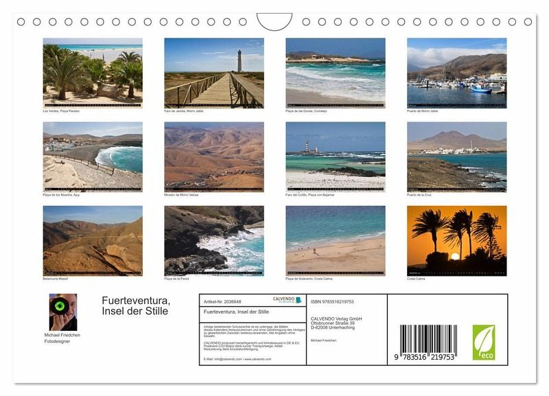 QUALITÄT - Hochwertiger Fotokalender mit 12 wunderschönen Motiven auf lichtbeständigem Bilderdruckpapier, robuste Spiralbindung mit Aufhängebügel.NACHHALTIG - deutliche Abfallreduzierung durch bedarfsgerechte Einzelstückfertigung, umweltfreundliches FSC-zertifiziertes Papier, Produktion in Deutschland, klimabewusste Logistik.PERFEKTES GESCHENK - Kalender für Freunde und Familie, für Kinder und Erwachsene, jung und alt, zu Weihnachten, Geburtstag oder zwischendurch.VIELFALT - Bildkalender in verschiedenen Formaten, z.B. DINA5, DIN A4, DIN A3 sowie DIN A2. Ob Naturmotiv, Gemälde oder Fotos, ideal für ein persönliches Wohlfühlambiente.Fuerteventura, die wildeste und unberührteste Insel der Kanaren von Autor(in): Michael Friedchen