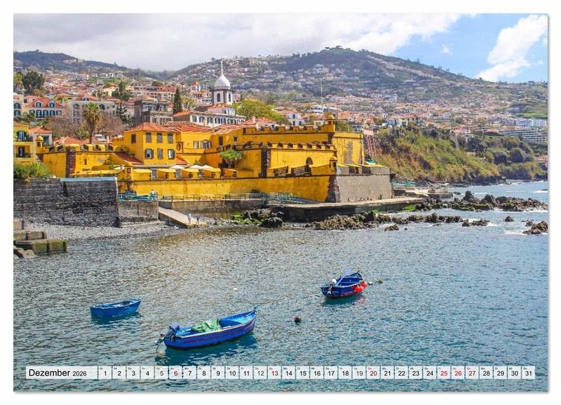 Ein stimmungsvoller Kalender, der die schönsten Sehenswürdigkeiten der Stadt Funchal auf Madeira in zwölf eindrucksvollen Monatsmotiven zeigt - von blühenden Gärten bis zur historischen Altstadt.