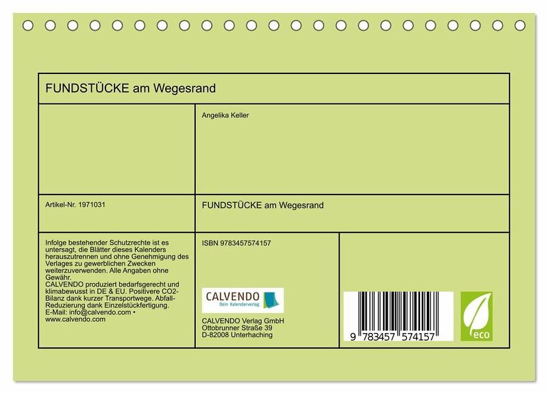 Was man so alles am Wegesrand finden kann, zeigen uns die Motive in diesem Kalender. Ob witzig, alt oder skurril - es ist für JEDEN etwas dabei. Ein nettes Mitbringsel zu jeder Gelegenheit.
