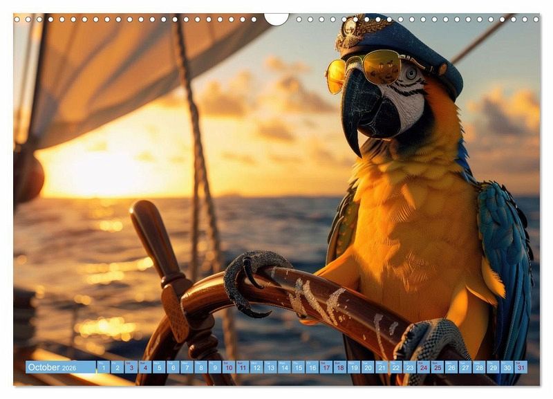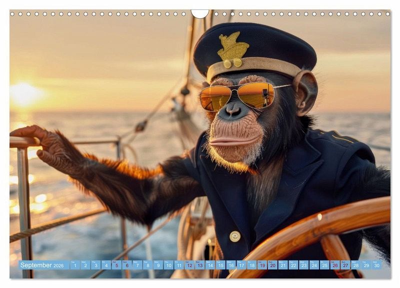 Set sail for a year full of adventure with the 'Funny animals as a captain on a boat'. Immerse yourself in twelve months of charming animals taking the helm and shining as captains on the sparkling waters. This AI-generated calendar will bring a smile to your face every month. Perfect for boating enthusiasts, sailors and captains who love freedom on the water. With endearing illustrations that will warm any heart, the 'Funny animals as a captain on a boat' calendar is the ideal gift to celebrate a passion for sailing and a love of animals all year round. Get your calendar and let our four-legged friends navigate you through the year.