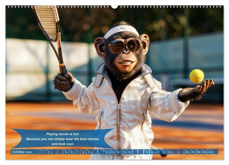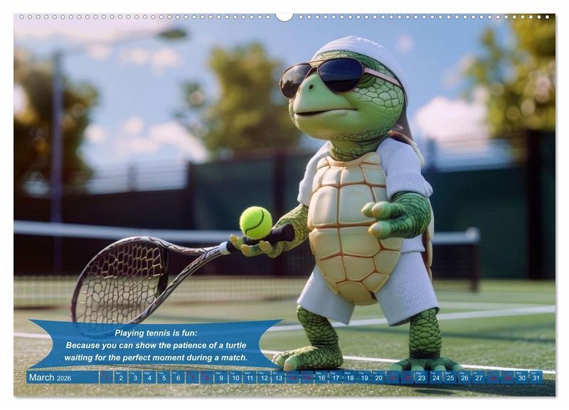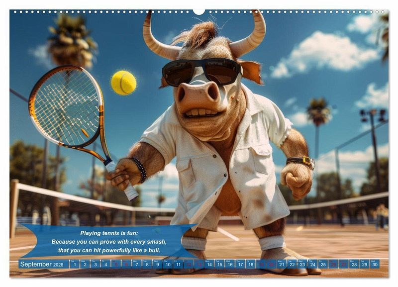 QUALITY - High-quality photo calendar with 12 beautiful images on light-resistant paper, robust spiral binding with hanger.SUSTAINABLE - Significant waste reduction due to print-on-demand production, environmentally friendly FSC-certified paper, produced in the UK, climate-conscious logistical processes.PERFECT GIFT - calendars for friends and family, for children, all ages and all occasions, from Christmas to birthdays and everything in between.LOTS OF CHOICE - Wall calendars in different sizes (DIN A4 and DIN A3), for any topic and personal taste, featuring photography, painting and illustrations.Funny animals in a tennis outfit with cool slogans for tennis lovers, author: Peter Rübsamen