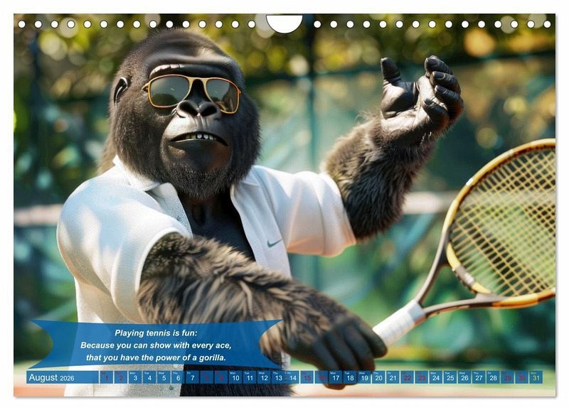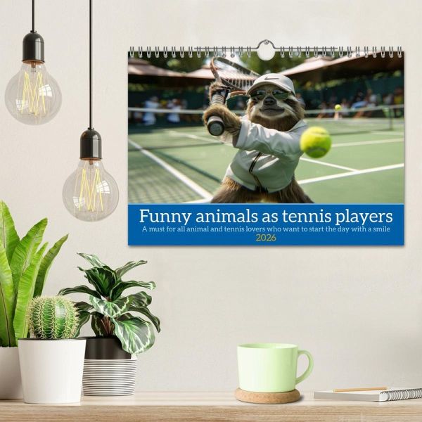 QUALITY - High-quality photo calendar with 12 beautiful images on light-resistant paper, robust spiral binding with hanger.SUSTAINABLE - Significant waste reduction due to print-on-demand production, environmentally friendly FSC-certified paper, produced in the UK, climate-conscious logistical processes.PERFECT GIFT - calendars for friends and family, for children, all ages and all occasions, from Christmas to birthdays and everything in between.LOTS OF CHOICE - Wall calendars in different sizes (DIN A4 and DIN A3), for any topic and personal taste, featuring photography, painting and illustrations.Funny animals in a tennis outfit with cool slogans for tennis lovers, author: Peter Rübsamen