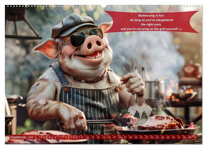 PREMIUM COLLECTION - Brilliant photo calendar with 12 beautiful motifs, high-gloss art print in museum quality.QUALITY - high-quality materials, sturdy back cover with 2 innovative insert pockets for optimum presentation on the wall.SUSTAINABLE - significant reduction in waste thanks to customised one-off production, environmentally friendly FSC-certified paper, production in Germany, climate-conscious logistics.PERFECT GIFT - calendars for friends and family, for children and adults, young and old, for Christmas, birthdays or in between.Funny animals with barbecue apron on the grill with humorous slogans von Autor(in): Peter Rübsamen