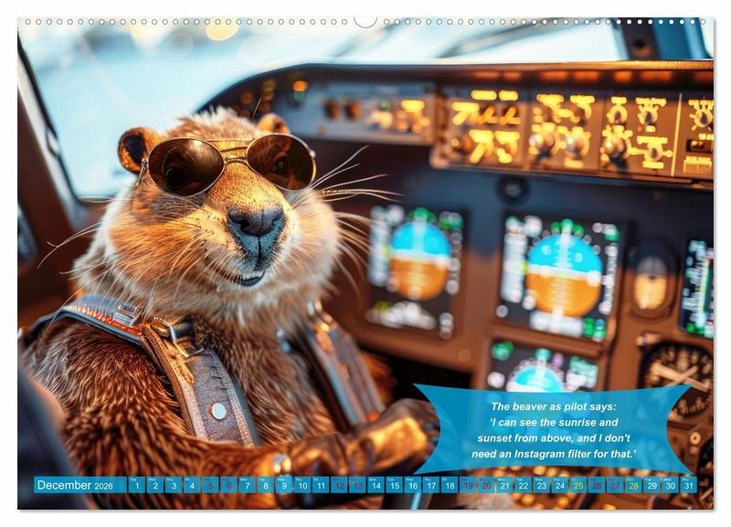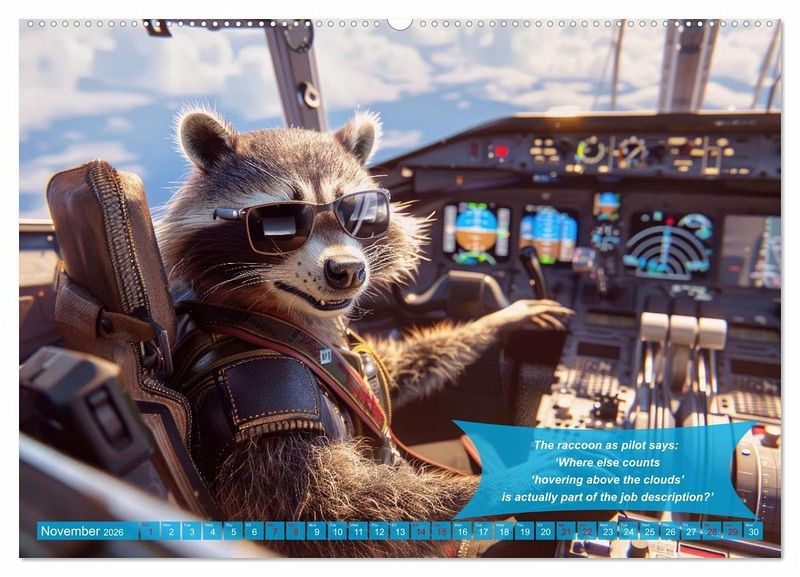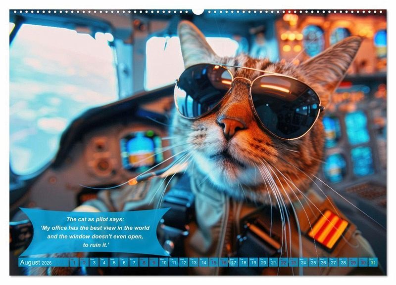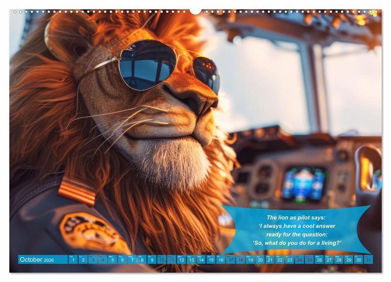 Take off into a year of laughter and charm with our 'Funny Charming Animals as Pilots' annual calendar. Each month, discover a new, adorable animal donning a pilot's uniform, ready to navigate the skies of your imagination. From the daring dog to the cat calmly controlling the cockpit, these whimsical creatures and their catchy slogans will keep you entertained all year long. Perfect for pilots, animal lovers, or anyone who appreciates a touch of humour and joy in their day-to-day. This with AI generated calendar isn't just a way to track dates. It's a ticket to smiles and giggles, making it an ideal gift for friends, family, or even yourself. Fasten your seatbelts for a delightful journey through the year with our furry friends.