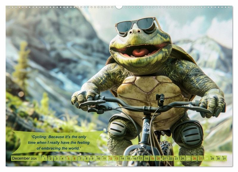 December: Turtle riding a bicycle