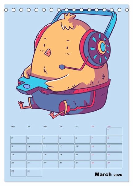 QUALITY - High-quality photo calendar with 12 beautiful images on light-resistant paper, robust spiral binding.SUSTAINABLE - Significant waste reduction due to print-on-demand production, environmentally friendly FSC-certified paper, produced locally, climate-conscious logistical processes.PERFECT GIFT - calendars for friends and family, for children, all ages and all occasions, from Christmas to birthdays and everything in between.LOTS OF CHOICE - Wall calendars in different sizes (DIN A4 and DIN A3), for any topic and personal taste, featuring photography, painting and illustrations.A year-round gaming adventure with cute little animals playing on consoles. von Autor(in): Luca Schmidt
