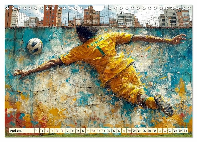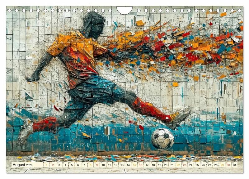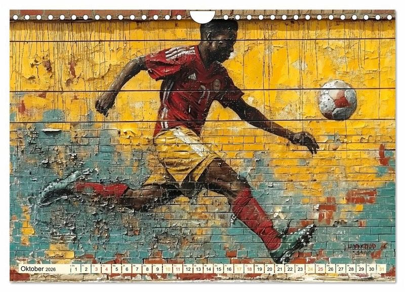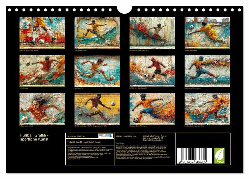 Entdecken Sie den beliebtesten Sport der Welt in Verbindung mit der lebendigen Kunst des Graffiti, der weltweiten Kunstbewegung. Bestaunen Sie jeden Monat atemberaubende Graffiti-Kunstwerke, die vom dynamischen Geist des Fußballs inspiriert sind. Nehmen Sie teil an der Kombination, in der sich Fußball und Graffiti vereinen, um Gemeinschaften zu verbinden und Kreativität zu inspirieren. Der Fotokünstler Peter Roder hat fantastische KI-Bilder gestaltet und zusammengestellt. Egal, ob Sie ein Spieler, ein Fan oder ein Kunstliebhaber sind, dieser Kalender ist ein Muss. Dieser qualitativ hochwertige Kalender gehört zur exklusiven CALVENDO Gold-Edition und wurde zusätzlich in der Klasse "Sport" ausgezeichnet.