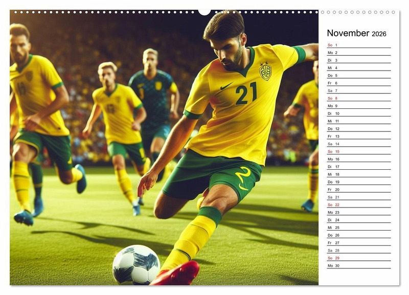 Entdecken Sie den Zauber des Fußballs neu - mit unserem exklusiven Kalender "Fußball Highlights". Jedes Bild, meisterhaft durch Künstliche Intelligenz erschaffen, fängt die Leidenschaft und Dynamik des Spiels ein. Von spektakulären Torszenen über dramatische Zweikämpfe bis hin zu atemberaubenden Spielzügen - erleben Sie Fußball in all seinen Facetten. Dieser Kalender ist nicht nur ein visuelles Meisterwerk, sondern auch ein Hommage an die unvergesslichen Momente des Sports. Ideal für jeden Fußballfan, bringt dieser Kalender die Aufregung und Schönheit des Fußballs direkt in Ihr Zuhause oder Büro. Jeder Monat bietet ein neues, faszinierendes Kunstwerk, das die Spannung eines ganzen Spiels in einem einzigen Moment einfängt.