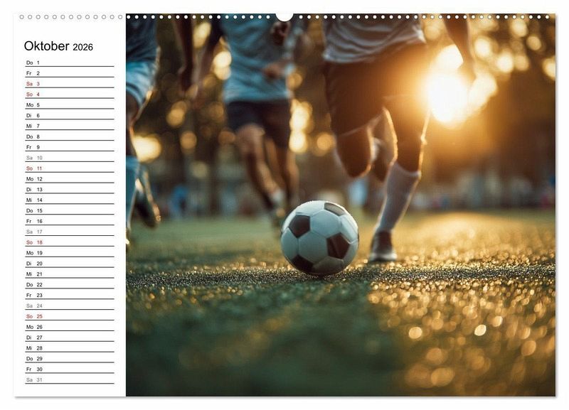 Dieser Fußballkalender fängt ein, was den Sport so besonders macht: Leidenschaft, Spannung und die Energie des Moments. Ausdrucksstarke Bilder zeigen Emotion, Dynamik und Teamgeist - die pure Faszination Fußball. Gleichzeitig bietet der Kalender eine praktische Planer-Funktion mit Platz für Notizen, Termine und Spiele - ideal für Alltag, Training oder Turnierplanung. Ob im Büro, Zuhause oder im Vereinsheim: Monat für Monat erinnert er daran, warum Fußball mehr ist als ein Spiel. Ein inspirierender Sportkalender und ideales Geschenk für Spieler, Trainer und Kinder, die den Sport nicht nur sehen, sondern leben. Bilder wurden mit moderner KI-Technologie gestaltet.