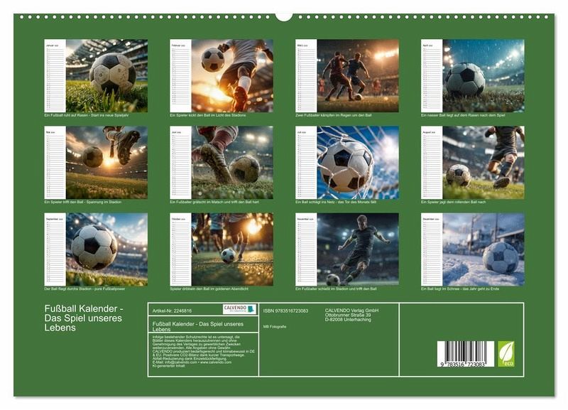 PREMIUM-LINIE - Brillanter Fotokalender mit 12 wunderschönen Motiven, Kunstdruck in Hochglanz in Museumsqualität.QUALITÄT - edle Materialien, stabile Rückwand mit 2 innovativen Einstecktaschen für eine optimale Präsentation an der Wand.NACHHALTIG - deutliche Abfallreduzierung durch bedarfsgerechte Einzelstückfertigung, umweltfreundliches FSC-zertifiziertes Papier, Produktion in Deutschland, klimabewusste Logistik.PERFEKTES GESCHENK - Kalender für Freunde und Familie, für Kinder und Erwachsene, jung und alt, zu Weihnachten, Geburtstag oder zwischendurch.Fesselnde Fußballbilder zeigen die ganze Energie des Spiels, von packenden Zweikämpfen bis zu stillen Momenten voller Emotion und Liebe zum Ball. von Autor(in): Michael Bihlmayer