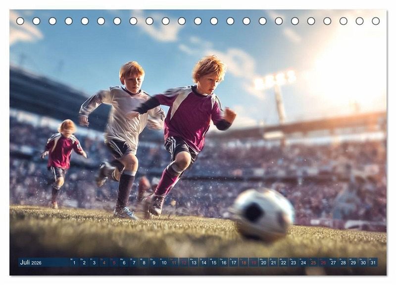 Diese wundervollen Illustrationen, erstellt mit Ki und Photoshop, bringen die Leidenschaft und den Spaß des Fußballs direkt ins Kinderzimmer. Mit liebevoll gestalteten Motiven voller Action, Teamgeist und Abenteuer begleitet er kleine Fußballfans durch das ganze Jahr.