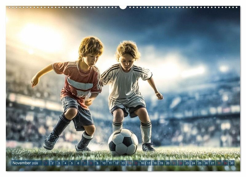 Diese wundervollen Illustrationen, erstellt mit Ki und Photoshop, bringen die Leidenschaft und den Spaß des Fußballs direkt ins Kinderzimmer. Mit liebevoll gestalteten Motiven voller Action, Teamgeist und Abenteuer begleitet er kleine Fußballfans durch das ganze Jahr.