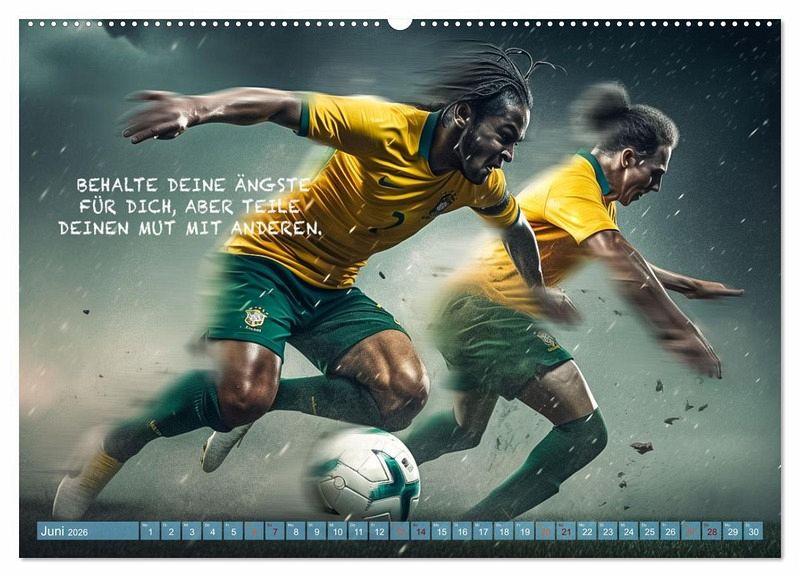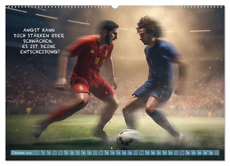 Dieser wundervolle einzigartige Fußballkalender des Fotografen Dirk Meutzner, wird Sie Monat für Monat immer wieder aufs neue begeistern und motivieren. Er wird Sie anspornen zu Höchstleistungen und in schwierigen Zeiten wieder aufrichten. Da unsere Zeit, geprägt von Ängsten und Burnout ist, ist es wichtig sich immer wieder selbst zu motivieren und die Gedanken positiv zu beeinflussen. Dieser Kalender eignet sich auch als Geschenk für die Menschen, die Ihnen etwas bedeuten und die Sie lieben. Realisiert und bearbeitet wurde dieser Kalender mit KI und Photoshop.
