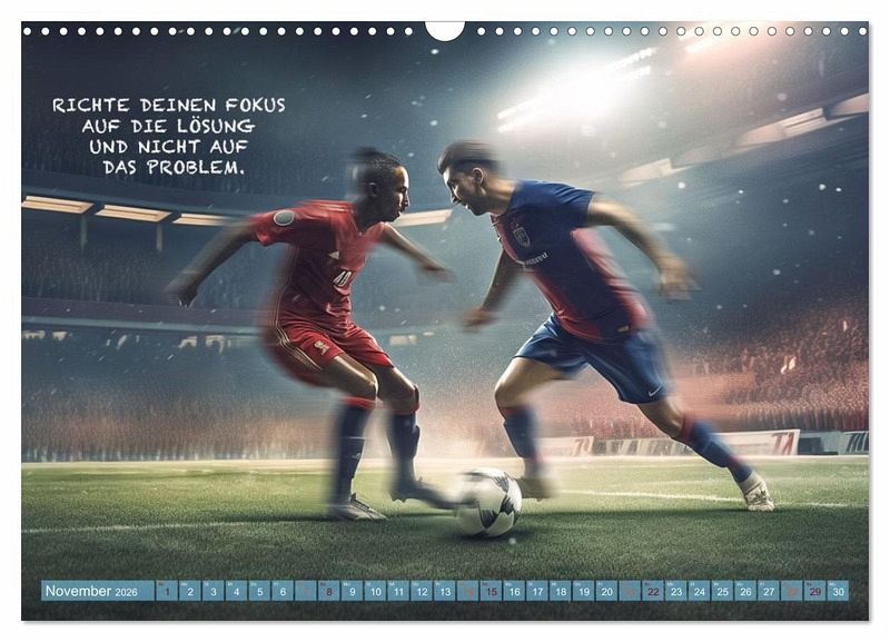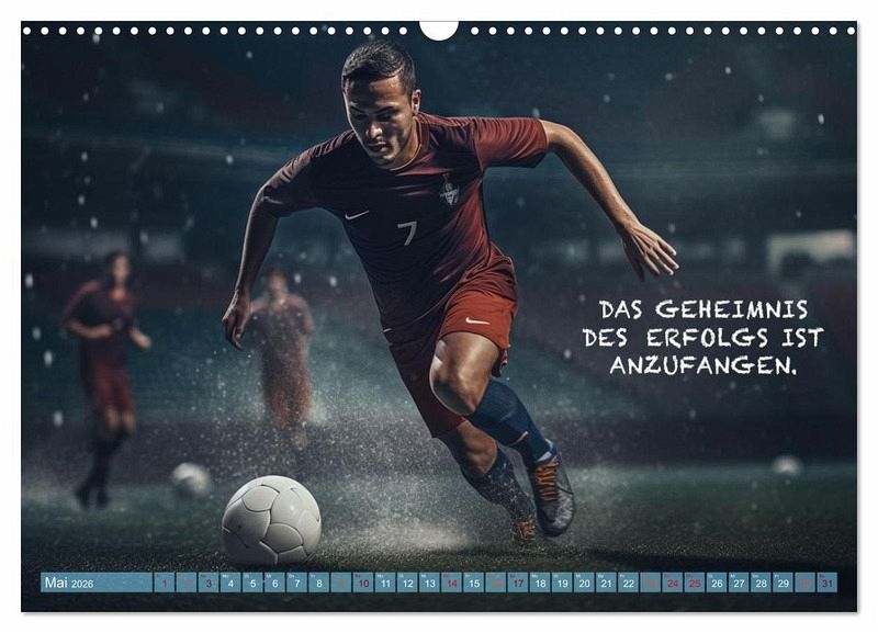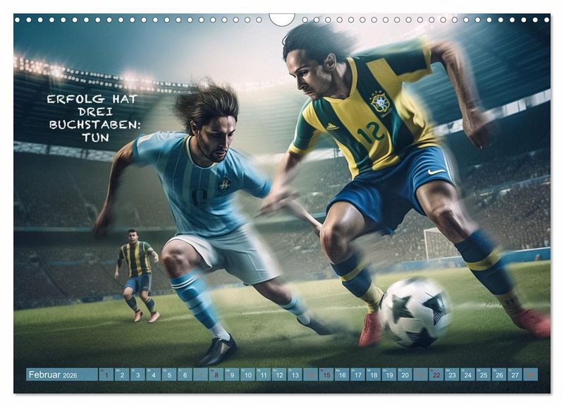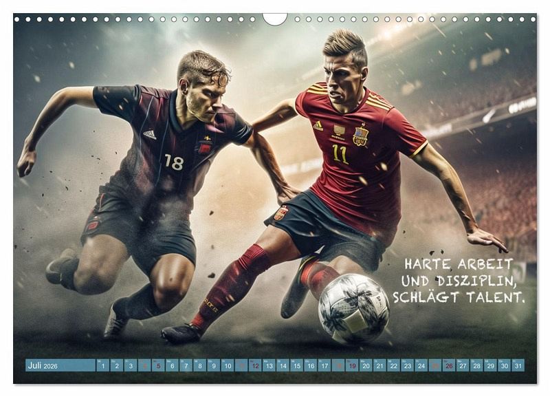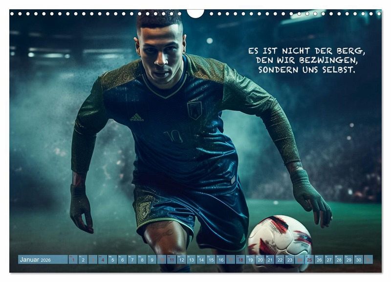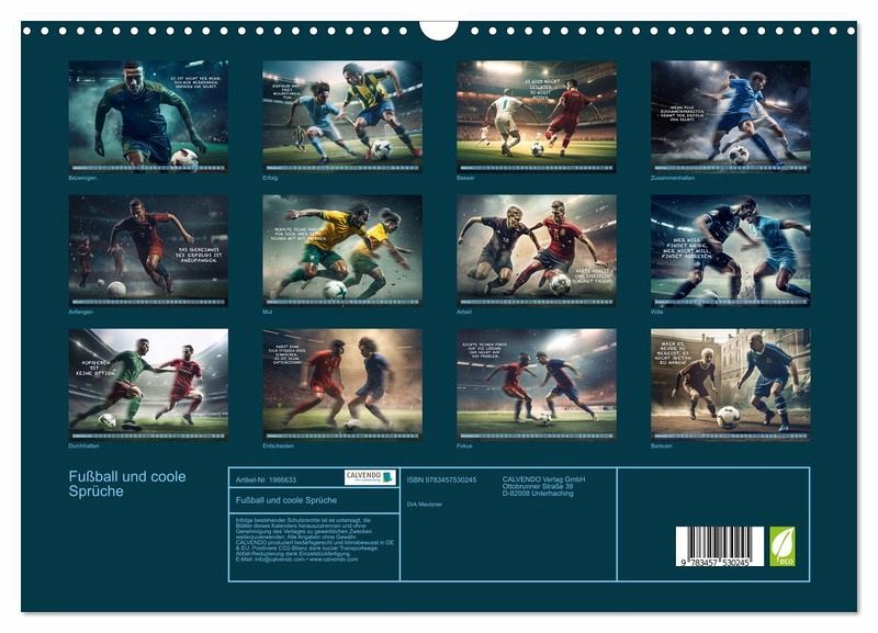 Dieser wundervolle einzigartige Fußballkalender des Fotografen Dirk Meutzner, wird Sie Monat für Monat immer wieder aufs neue begeistern und motivieren. Er wird Sie anspornen zu Höchstleistungen und in schwierigen Zeiten wieder aufrichten. Da unsere Zeit, geprägt von Ängsten und Burnout ist, ist es wichtig sich immer wieder selbst zu motivieren und die Gedanken positiv zu beeinflussen. Dieser Kalender eignet sich auch als Geschenk für die Menschen, die Ihnen etwas bedeuten und die Sie lieben. Realisiert und bearbeitet wurde dieser Kalender mit KI und Photoshop.
