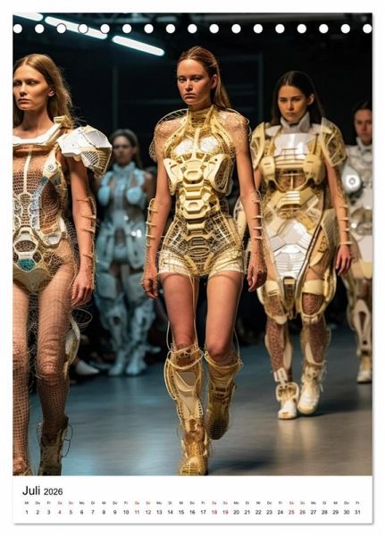 Willkommen in der Zukunft der Mode! Der brandneue Kalender "Future Couture" ist jetzt erhältlich und bietet Ihnen eine einzigartige visuelle Erfahrung, die Sie in die Welt der Mode der nächsten 100 Jahre entführt. Jedes Bild in diesem Kalender wurde mit fortschrittlicher künstlicher Intelligenz erstellt und zeigt atemberaubende Models auf dem Laufsteg in futuristischen Outfits.Dieser Kalender ist ein Muss-Have für alle Mode-Enthusiasten und Trendsetter. Jeden Monat werden Sie von einem neuen, aufregenden Bild überrascht, das Ihnen einen Einblick in die Zukunft der Mode gibt. Von innovativen Materialien bis hin zu futuristischen Schnitten - diese Bilder zeigen Ihnen die neuesten Trends und Designs, die die Modeindustrie in den nächsten Jahrzehnten prägen werden.Dieser Kalender ist auch ein perfektes Geschenk für alle, die Mode und Technologie lieben. Mit diesem Kalender haben Sie nicht nur die Möglichkeit, Ihre Liebe zur Mode zu zeigen, sondern auch ein einzigartiges Kunstwerk zu besitzen, das Sie das ganze Jahr über begleitet.Wenn Sie also auf der Suche nach einem einzigartigen Geschenk für einen Mode-Enthusiasten sind oder einfach nur Ihren eigenen Stil aufpeppen möchten, dann ist der "Future Couture" Kalender genau das Richtige für Sie!Worauf warten Sie also noch? Bestellen Sie noch heute den Kalender "Future Couture" und lassen Sie sich von der Zukunft der Mode inspirieren! Seien Sie einer der Ersten, der die neuesten Trends und Designs entdeckt und seien Sie Teil der Revolution, die die Modeindustrie in den nächsten Jahrzehnten verändern wird.