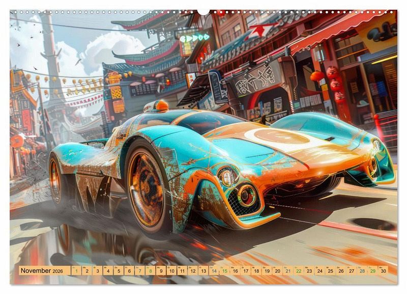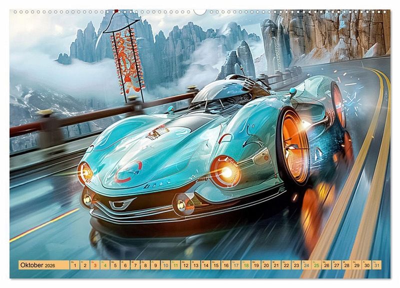 Willkommen in der Zukunft der Fantasie. Unser Kalender präsentiert eine faszinierende Sammlung von futuristischen Boliden, die von der asiatischen Kultur inspiriert sind. Diese KI-generierten Werke zeigen schnittige utopische Rennwagen, die in einer Vielzahl von atemberaubenden Umgebungen zu bewundern sind. Ob in einer kleinen Stadt, in malerischer Berglandschaft oder in üppigen Dschungelgebieten, diese Boliden ziehen alle Blicke auf sich. Der beschwingte Zeichenstil verleiht den Fahrzeugen eine künstlerische Note und lässt sie wie wahre Kunstwerke wirken. Ein Muss für alle Fans von Boliden und von Liebhabern des innovativen Automobildesigns. Sichern Sie sich jetzt diesen einzigartigen Kalender und lassen Sie sich von der Schönheit und Kreativität dieser futuristischen Boliden verzaubern.
