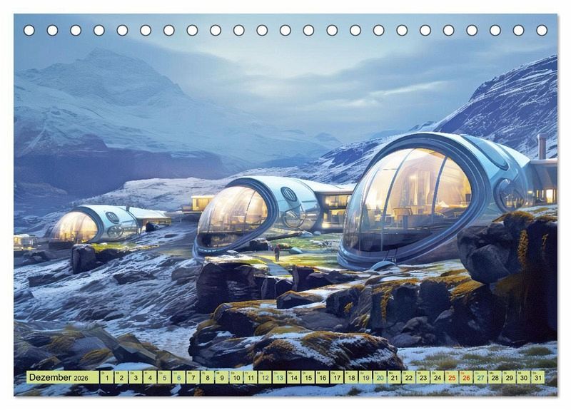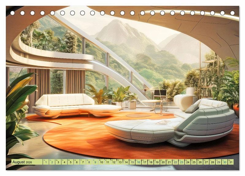 Sichern Sie sich jetzt den Kalender mit dem Titel Futuristische moderne Behausungen und sehen Sie eine beeindruckende Architektur der Zukunft, welche mit Hilfe der KI erstellt wurde. Die atemberaubenden Werke zeigen fantastische Landschaften und Innenansichten, die jeden Betrachter in ihren Bann ziehen. Ob gläserne Fassaden in runden Behausungen oder die modernen grünen Oasen mit futuristischen Möbeln bei den Innenansichten, die zukünftige spielerisch erdachte Architektur wird Sie begeistern. Holen Sie sich diesen einzigartigen Kalender und tauchen Sie ein in die Welt der modernen Gebäude. Ein Juwel für alle Architektur- und Designliebhaber.