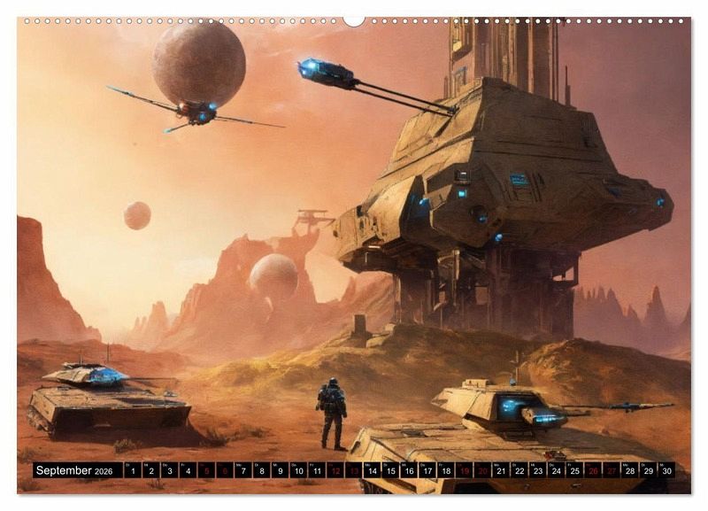 Tauchen Sie ein in die faszinierende Welt der Weltraumschlachten mit unserem Wandkalender! Mit aufregenden futuristischen, von KI erstellten, Bildern von Schlachten im All und auf anderen Planeten ist dieser Kalender ein absolutes Must-Have für alle Science-Fiction- und Weltraumliebhaber.Die hochauflösenden Bilder in diesem Kalender lassen Sie in atemberaubende Schlachten eintauchen, bei denen Raumschiffe durch die Galaxie fliegen und sich epische Kämpfe liefern. Von interstellaren Explosionen bis hin zu beeindruckenden Lichteffekten - diese Bilder werden Sie in ihren Bann ziehen und Ihre…mehr