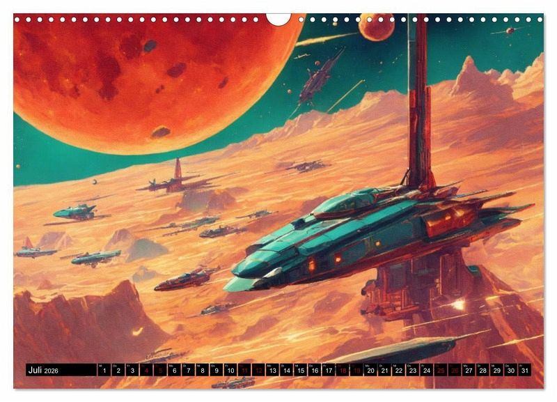 Tauchen Sie ein in die faszinierende Welt der Weltraumschlachten mit unserem Wandkalender! Mit aufregenden futuristischen, von KI erstellten, Bildern von Schlachten im All und auf anderen Planeten ist dieser Kalender ein absolutes Must-Have für alle Science-Fiction- und Weltraumliebhaber.Die hochauflösenden Bilder in diesem Kalender lassen Sie in atemberaubende Schlachten eintauchen, bei denen Raumschiffe durch die Galaxie fliegen und sich epische Kämpfe liefern. Von interstellaren Explosionen bis hin zu beeindruckenden Lichteffekten - diese Bilder werden Sie in ihren Bann ziehen und Ihre…mehr