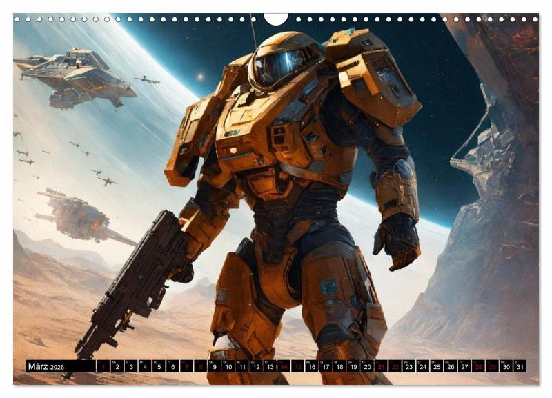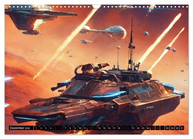 Tauchen Sie ein in die faszinierende Welt der Weltraumschlachten mit unserem Wandkalender! Mit aufregenden futuristischen, von KI erstellten, Bildern von Schlachten im All und auf anderen Planeten ist dieser Kalender ein absolutes Must-Have für alle Science-Fiction- und Weltraumliebhaber.Die hochauflösenden Bilder in diesem Kalender lassen Sie in atemberaubende Schlachten eintauchen, bei denen Raumschiffe durch die Galaxie fliegen und sich epische Kämpfe liefern. Von interstellaren Explosionen bis hin zu beeindruckenden Lichteffekten - diese Bilder werden Sie in ihren Bann ziehen und Ihre Fantasie beflügeln.Hergestellt aus hochwertigem Papier, ist dieser Kalender langlebig und von hoher Qualität. Die Seiten sind stabil und können problemlos umgeblättert werden, ohne dass sie reißen oder beschädigt werden. Die Bilder behalten ihre satte Farbintensität und Detailtreue über das gesamte Jahr hinweg.Der Wandkalender "Weltraumschlachten" eignet sich perfekt als Geschenk für Freunde, Familie oder Kollegen, die von der Schönheit des Weltraums und der Faszination von Schlachten im All begeistert sind. Hängen Sie ihn in Ihrem Büro, Wohnzimmer oder Schlafzimmer auf und lassen Sie sich jeden Tag von den spannenden Bildern inspirieren.Tauchen Sie ein in die aufregende Welt der Weltraumschlachten und bestellen Sie noch heute unseren beeindruckenden Wandkalender. Erleben Sie das Universum wie nie zuvor!