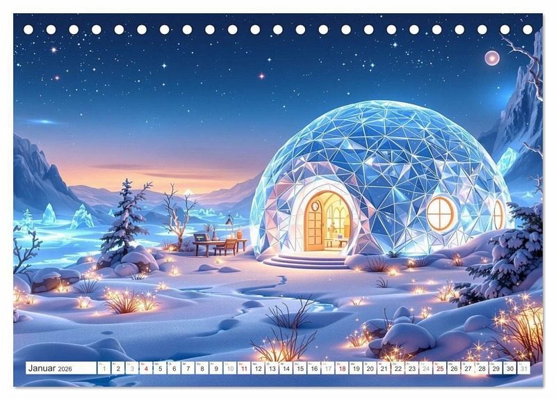 Entfliehe dem Alltag und tauche ein in die atemberaubende Vision des "Futuristischen Landlebens". Dieser einzigartige Kalender nimmt dich mit auf eine visuelle Reise zu zukünftigen Cottages auf fernen Planeten. Jedes Monatsblatt ist ein detailreiches Meisterwerk, geschaffen mit fortschrittlicher KI-Technologie, das den Charme eines gemütlichen Heims mit der majestätischen Schönheit ferner Welten verbindet. Erlebe Cottage-Architektur, die über Wolken schwebt, in biolumineszenten Pilzwäldern steht oder sich in gigantischen, leuchtenden Kürbissen versteckt. Ein Muss für alle, die das Landleben und die Wunder des Weltraums lieben.