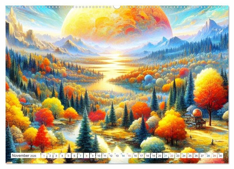 Tauchen Sie ein in die faszinierenden Farben und futuristischen Landschaften ferner Planeten. Unser Kalender liefert Ihnen jeden Monat atemberaubende KI-Bilder, die die Schönheit und das Geheimnis des Kosmos einfangen. Von galaktischen Sonnenuntergängen über interstellare Seen bis hin zu spektakulären Horizonten - lassen Sie sich von lebendigen Szenen inspirieren, die die Wunder fremder Welten zum Leben erwecken.
