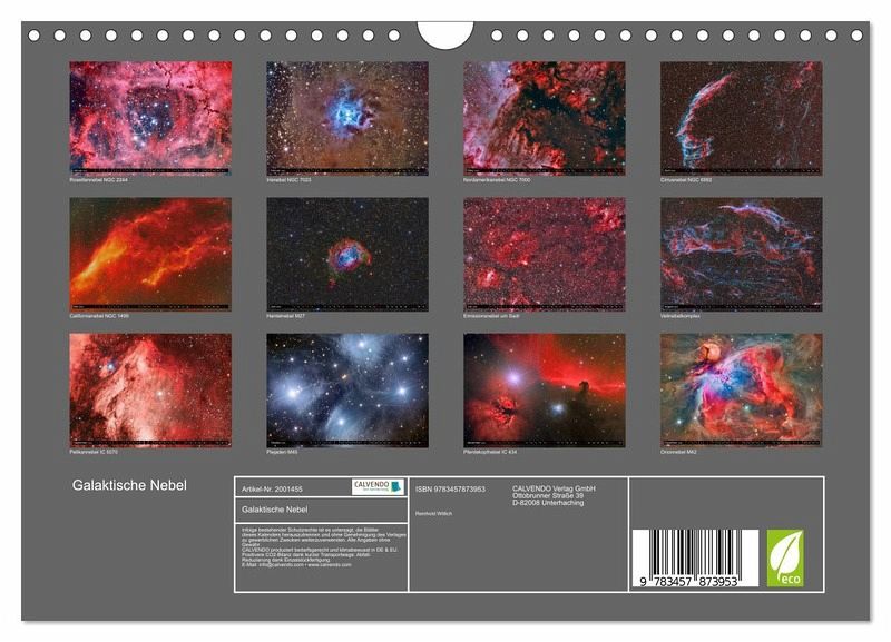 QUALITÄT - Hochwertiger Fotokalender mit 12 wunderschönen Motiven auf lichtbeständigem Bilderdruckpapier, robuste Spiralbindung mit Aufhängebügel.NACHHALTIG - deutliche Abfallreduzierung durch bedarfsgerechte Einzelstückfertigung, umweltfreundliches FSC-zertifiziertes Papier, Produktion in Deutschland, klimabewusste Logistik.PERFEKTES GESCHENK - Kalender für Freunde und Familie, für Kinder und Erwachsene, jung und alt, zu Weihnachten, Geburtstag oder zwischendurch.VIELFALT - Bildkalender in verschiedenen Formaten, z.B. DIN A5, DIN A4, DIN A3 sowie DIN A2. Ob Naturmotiv, Gemälde oder Fotos, ideal für ein persönliches Wohlfühlambiente.Die schönsten galaktischen Nebel von Autor(in): Reinhold Wittich