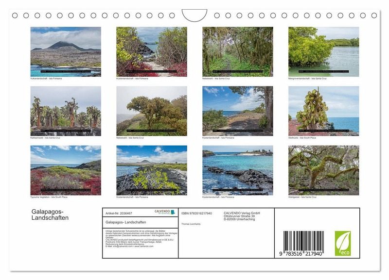 QUALITÄT - Hochwertiger Fotokalender mit 12 wunderschönen Motiven auf lichtbeständigem Bilderdruckpapier, robuste Spiralbindung mit Aufhängebügel.NACHHALTIG - deutliche Abfallreduzierung durch bedarfsgerechte Einzelstückfertigung, umweltfreundliches FSC-zertifiziertes Papier, Produktion in Deutschland, klimabewusste Logistik.PERFEKTES GESCHENK - Kalender für Freunde und Familie, für Kinder und Erwachsene, jung und alt, zu Weihnachten, Geburtstag oder zwischendurch.VIELFALT - Bildkalender in verschiedenen Formaten, z.B. DIN A5, DIN A4, DIN A3 sowie DIN A2. Ob Naturmotiv, Gemälde oder Fotos, ideal für ein persönliches Wohlfühlambiente.Die schönsten Landschaften der Galapagosinseln von Autor(in): Thomas Leonhardy