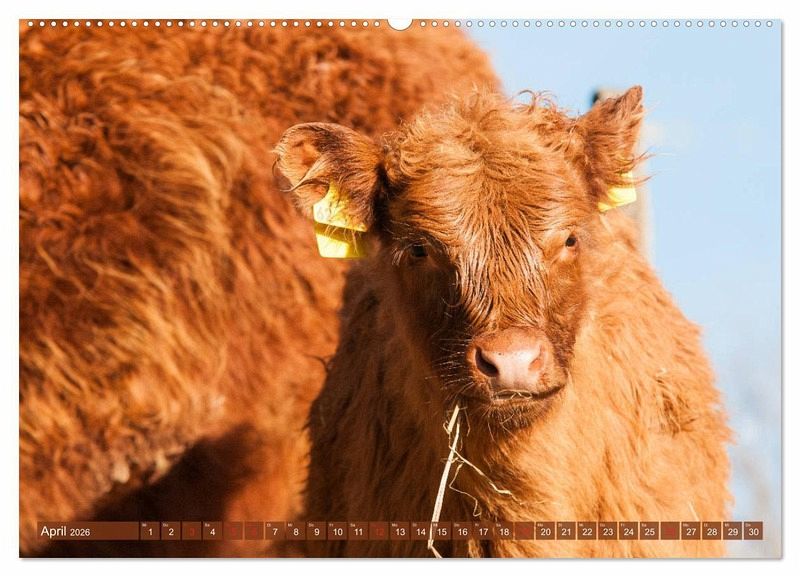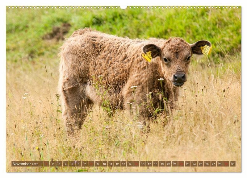 Tierkinder faszinieren jeden Betrachter, besonders wenn sie so wunderschön sind wie die Kälber der robusten Rasse Galloway. Ursprünglich aus Schottland stammend, erfreuen sich die kleinen bis mittelrahmigen Rinder in Deutschland zunehmender Beliebtheit. Besonderes Merkmal ist ihr langes gelocktes Deckhaar, was ihnen ein zauberhaftes Aussehen verleiht. Der Kalender für jeden Tierfreund.