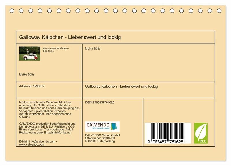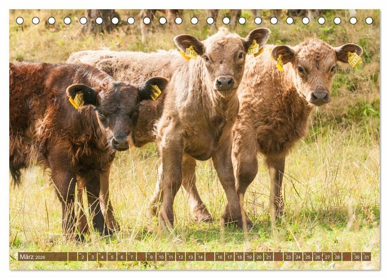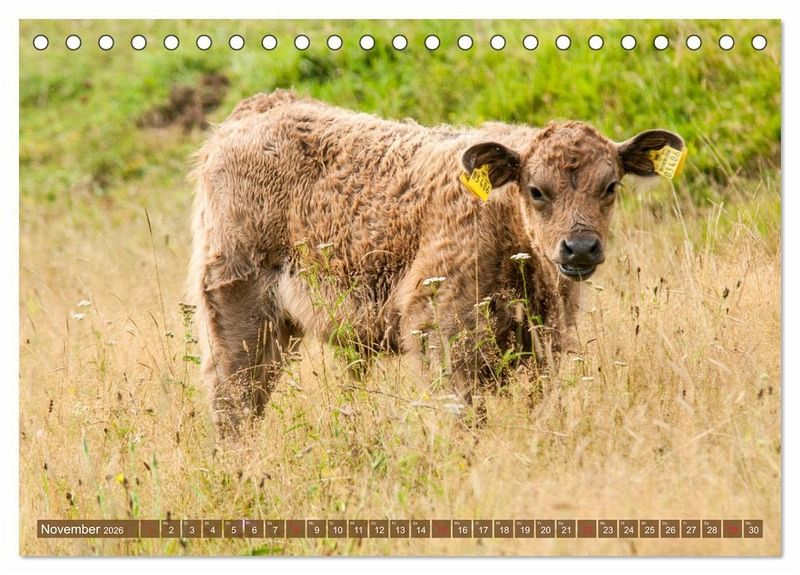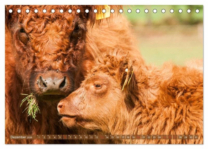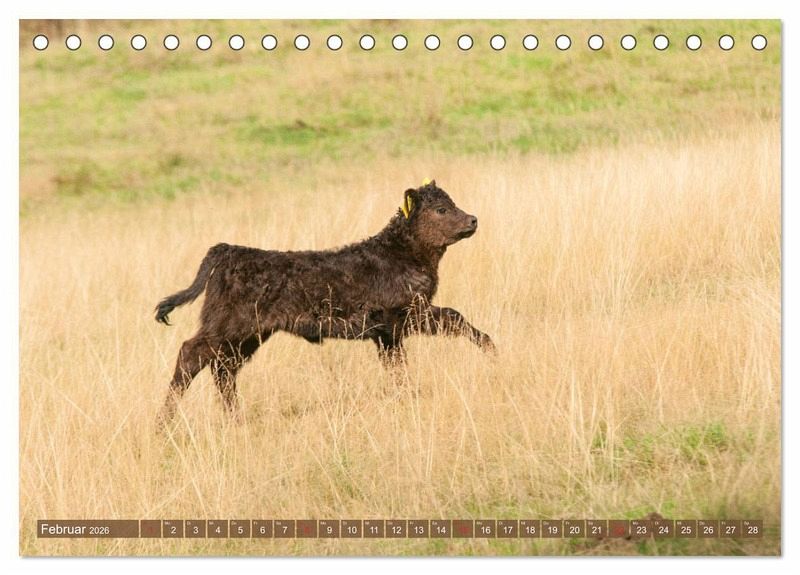 Tierkinder faszinieren jeden Betrachter, besonders wenn sie so wunderschön sind wie die Kälber der robusten Rasse Galloway. Ursprünglich aus Schottland stammend, erfreuen sich die kleinen bis mittelrahmigen Rinder in Deutschland zunehmender Beliebtheit. Besonderes Merkmal ist ihr langes gelocktes Deckhaar, was ihnen ein zauberhaftes Aussehen verleiht. Der Kalender für jeden Tierfreund.
