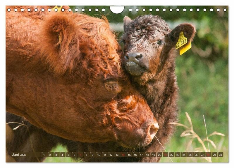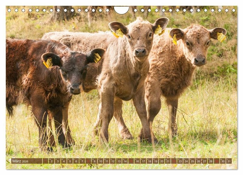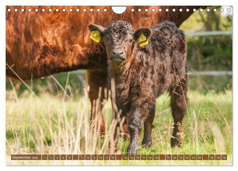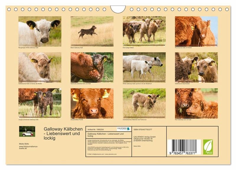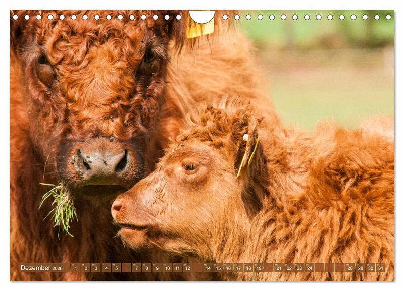 Tierkinder faszinieren jeden Betrachter, besonders wenn sie so wunderschön sind wie die Kälber der robusten Rasse Galloway. Ursprünglich aus Schottland stammend, erfreuen sich die kleinen bis mittelrahmigen Rinder in Deutschland zunehmender Beliebtheit. Besonderes Merkmal ist ihr langes gelocktes Deckhaar, was ihnen ein zauberhaftes Aussehen verleiht. Der Kalender für jeden Tierfreund.