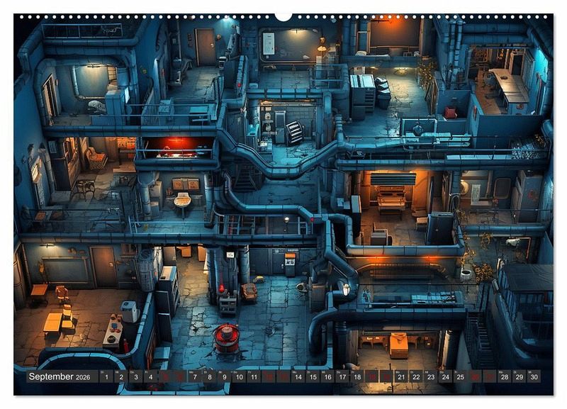 Dieser Kalender ist ein Fest der Nostalgie für alle Gamer da draußen. Jeder Monat präsentiert ein farbenfrohes Bild, inspiriert von den alten Rätsel Spielen. So schön die Räume oftmals programmiert waren, als Spieler hatte man natürlich keine Zeit zum genießen. Da ging es um das nächste Rätsel, den nächsten Feind. Dieser Kalender bietet nun die Möglichkeit, mal ganz entspannt mit den Augen durch die Räume zu wandern und zu überlegen, was man dort finden könnte. Eine KI nimmt es mit den Einzelheiten nicht so genau, so dass nicht alle Gegenstände Sinn ergeben - es sei denn, man gibt ihnen einen. Die Räume sind wie Labyrinthe aufgebaut, die auch nicht unbedingt eine Lösung beinhalten, aber die kann man ja suchen. Warum nicht mal in Gedanken einen Verbindungstunnel bauen? So ist der Kalender sowohl für Old-Gamer als auch für Kinder ein schönes Geschenk.