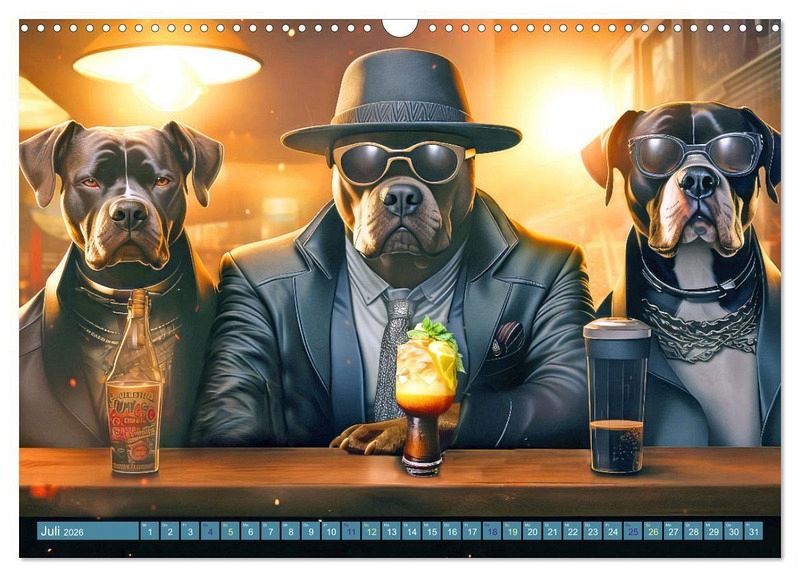 Willkommen in der Welt der Gangsterhunde. Pit Bulls und andere Hunde sind die wahren Könige der Straße. Sie fahren Luxuswagen, feiern Poolpartys, cruisen mit dem Moped durch die Straßen und sind die härtesten Jungs in der Gang. Unsere KI-Bilder zeigen die Gangsterhunde in verschiedenen Szenarien, mit starken Farben und einer liebevollen Inszenierung. Lassen Sie sich von ihrem Charme und ihrer Coolness verzaubern, immer mit einem Augenzwinkern und einer Prise Humor.