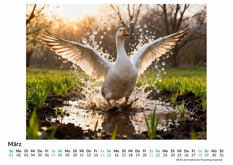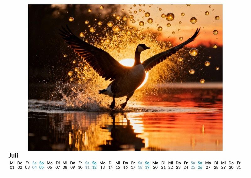 Sie sind laut, sie sind frech und haben das Internet im Sturm erobert. Die Gans hat sich vom einfachen Wassertier zu einem Symbol für unerschrockene Dreistigkeit entwickelt und ist das unangefochtene Trendtier der Meme Kultur. Dieser Kalender ist optimal geeignet: * Für alle, die den trockenen und manchmal absurden Humor von Internet Memes schätzen. * Für Menschen, die eine Vorliebe für das unerwartete Federvieh entwickelt haben. * Für jene, die einen unkonventionellen Begleiter für das kommende Jahr suchen. Der Kalender "Gans" fängt diesen einzigartigen Geist in zwölf Szenen ein. Jeden Monat präsentiert sich eine Gans in einer neuen, unerwarteten Situation. Mal philosophisch am Teich, mal als unangefochtener Herrscher des Parkwegs oder in Momenten, die man einfach selbst gesehen haben muss. Jedes dieser Motive wurde von einem digitalen Geist erdacht und in Pixel verwandelt, um die Essenz des Phänomens festzuhalten. Was der Kalender bietet: * Zwölf Monatsmotive, die den Gänse Hype zelebrieren. * Ein praktisches Kalendarium für alle wichtigen Termine des Jahres. * Ein Wandkalender, der Monat für Monat für Gesprächsstoff sorgt. Dieser Kalender ist eine Hommage an das Federvieh, das uns zum Lachen und manchmal auch zum Kopfschütteln bringt. Er begleitet durch das Jahr mit einer guten Portion Humor und der Gewissheit, dass die Gänse immer für eine Überraschung gut sind. Ein Blick auf die Monatsansichten lohnt sich, um die ganze Vielfalt der gans-tastischen Szenen zu entdecken.