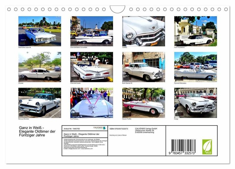 QUALITÄT - Hochwertiger Fotokalender mit 12 wunderschönen Motiven auf lichtbeständigem Bilderdruckpapier, robuste Spiralbindung mit Aufhängebügel.NACHHALTIG - deutliche Abfallreduzierung durch bedarfsgerechte Einzelstückfertigung, umweltfreundliches FSC-zertifiziertes Papier, Produktion in Deutschland, klimabewusste Logistik.PERFEKTES GESCHENK - Kalender für Freunde und Familie, für Kinder und Erwachsene, jung und alt, zu Weihnachten, Geburtstag oder zwischendurch.VIELFALT - Bildkalender in verschiedenen Formaten, z.B. DIN A5, DIN A4, DIN A3 sowie DIN A2. Ob Naturmotiv, Gemälde oder Fotos, ideal für ein persönliches Wohlfühlambiente.Weiße Oldtimer der führenden US-Automarken in Kuba von Autor(in): Henning von Loewis of Menar
