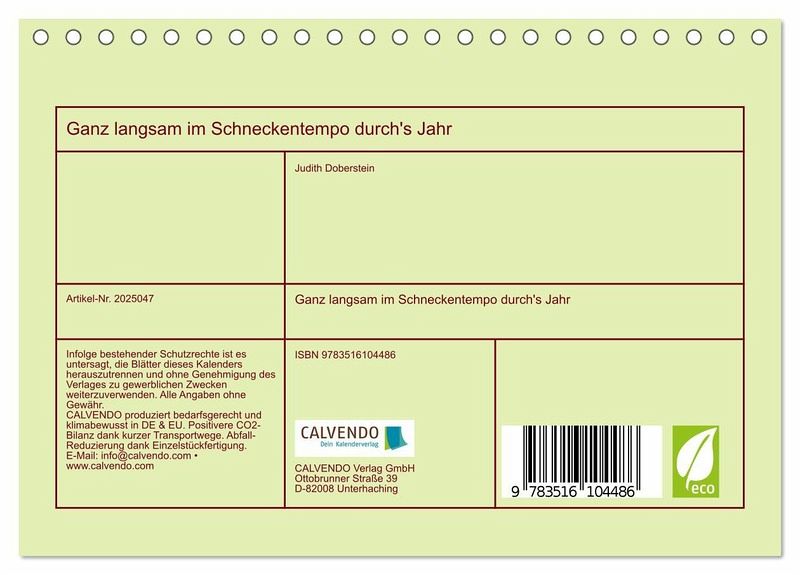 QUALITÄT - Hochwertiger Fotokalender mit 12 wunderschönen Motiven auf lichtbeständigem Bilderdruckpapier, robuste Spiralbindung.NACHHALTIG - deutliche Abfallreduzierung durch bedarfsgerechte Einzelstückfertigung, umweltfreundliches FSC-zertifiziertes Papier, Produktion in Deutschland, klimabewusste Logistik.PERFEKTES GESCHENK - Kalender für Freunde und Familie, für Kinder und Erwachsene, jung und alt, zu Weihnachten, Geburtstag oder zwischendurch.VIELFALT - Bildkalender in verschiedenen Formaten, z.B. DIN A5, DIN A4, DIN A3 sowie DIN A2. Ob Naturmotiv, Gemälde oder Fotos, ideal für ein persönliches Wohlfühlambiente.Jeden Monat ein schönes Schneckenfoto von Autor(in): Judith Doberstein