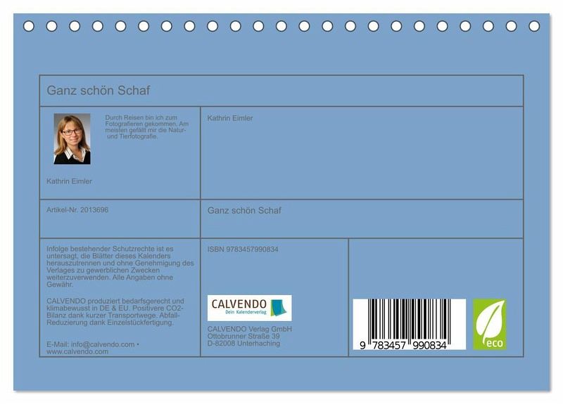 QUALITÄT - Hochwertiger Fotokalender mit 12 wunderschönen Motiven auf lichtbeständigem Bilderdruckpapier, robuste Spiralbindung.NACHHALTIG - deutliche Abfallreduzierung durch bedarfsgerechte Einzelstückfertigung, umweltfreundliches FSC-zertifiziertes Papier, Produktion in Deutschland, klimabewusste Logistik.PERFEKTES GESCHENK - Kalender für Freunde und Familie, für Kinder und Erwachsene, jung und alt, zu Weihnachten, Geburtstag oder zwischendurch.VIELFALT - Bildkalender in verschiedenen Formaten, z.B. DIN A5, DIN A4, DIN A3 sowie DIN A2. Ob Naturmotiv, Gemälde oder Fotos, ideal für ein persönliches Wohlfühlambiente.Schafe hier und Schafe dort von Autor(in): Kathrin Eimler