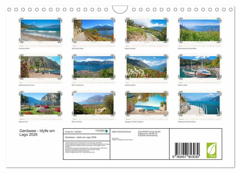 QUALITÄT - Hochwertiger Fotokalender mit 12 wunderschönen Motiven auf lichtbeständigem Bilderdruckpapier, robuste Spiralbindung mit Aufhängebügel.NACHHALTIG - deutliche Abfallreduzierung durch bedarfsgerechte Einzelstückfertigung, umweltfreundliches FSC-zertifiziertes Papier, Produktion in Deutschland, klimabewusste Logistik.PERFEKTES GESCHENK - Kalender für Freunde und Familie, für Kinder und Erwachsene, jung und alt, zu Weihnachten, Geburtstag oder zwischendurch.VIELFALT - Bildkalender in verschiedenen Formaten, z.B. DIN A5, DIN A4, DIN A3 sowie DIN A2. Ob Naturmotiv, Gemälde oder Fotos, ideal für ein persönliches Wohlfühlambiente.Idyllische Landschaftsimpressionen - nördlicher Gardasee, romantisch umrahmt von Autor(in): SusaZoom